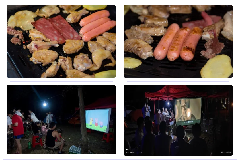 在欢声笑语中天渐渐转黑,然而,活动还在继续。我们搭建好灯光和银幕后,又搞起了烧烤,看起了电影,虽然没有撞见快乐的星球,但我们也依然收获了满满的喜悦~